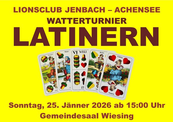 Das beliebte Watterturnier (Latinern) findet heuer wieder am Samstag, den 16. März 2024, Start um 15 Uhr, im Gemeindesaal Wiesing statt.